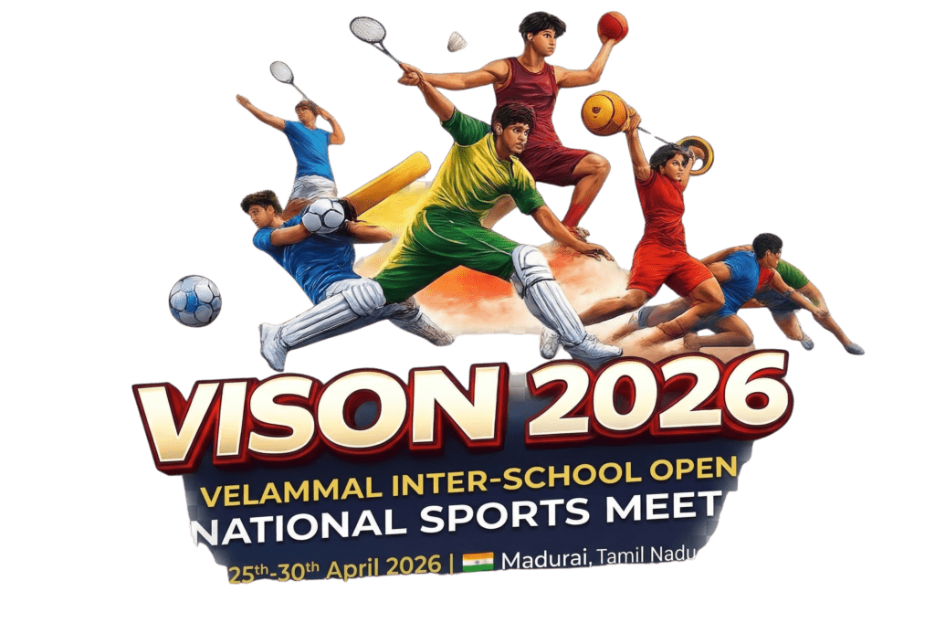 VISON 2026 is the Velammal Inter-School Open National Sports Meet hosted by Velammal Global School, Madurai. The event brings together school athletes from across India to compete in multiple sporting disciplines in a professionally organized national-level tournament environment that promotes sportsmanship, competition, and student development.